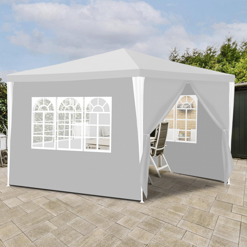 Joparri Tonnelle de Jardin étanche 3 x 3 m avec 4 Panneaux latéraux et fenêtres - Tente de Jardin Stable - Protection UV - Blanc - pour extérieur, Jardin, fête, Mariage, Pique-Nique, marché