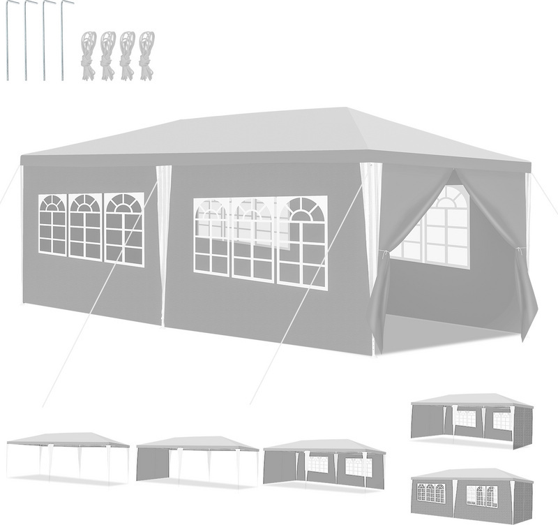 HOTEEL 3x6m Tonnelle Pliante Imperméable et Stable, avec 6 Parois latérales, UV50+ Barnum, 4 Sac Lestage Tonnelle Pop-up pour Mariage Tente de fête, marché, Pique-Nique, Camping (Gris)