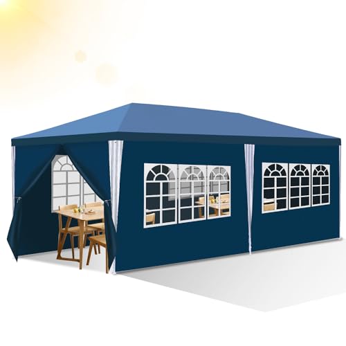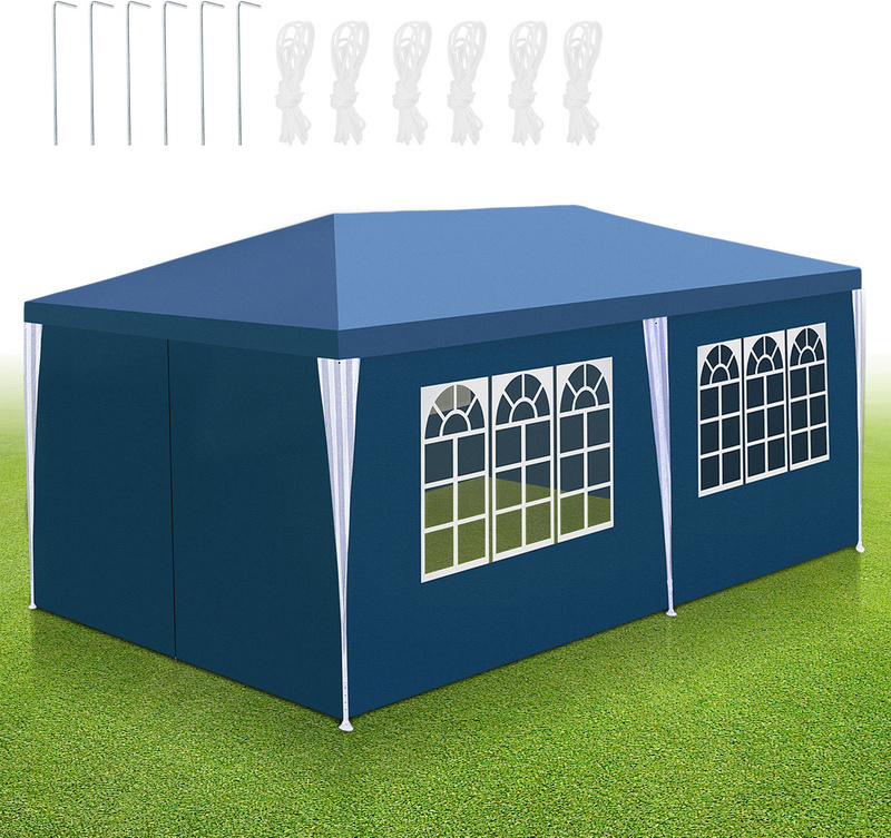 Izrielar Tonnelle de jardin étanche, 3 x 6 m, avec parois latérales et fenêtres, tente de réception pour fête, stand de marché, festival, marché aux puces et camping,bleu