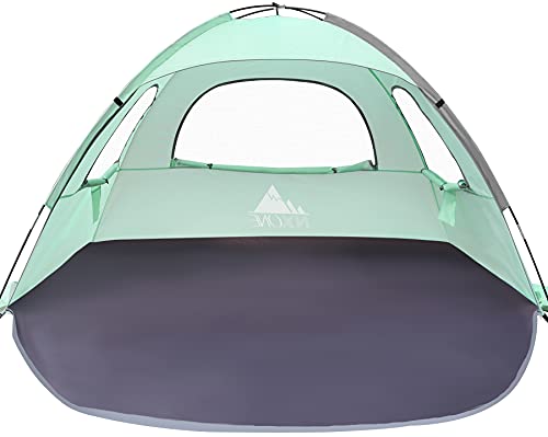 NXONE Tente de Plage pour 2 à 3 Personnes avec Protection UV, Sol étendu, 3 fenêtres enroulables en Maille et tiges en Fibre de Verre de 8 mm. Sac de Transport, piquets, haubans Inclus (Vert Menthe)