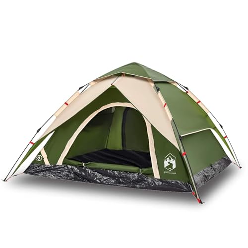 Tente de camping dôme pour 4 personnes, verte, système de libération rapide, tente d'extérieur imperméable avec toit pare-soleil, légère et portable pour l'aventure