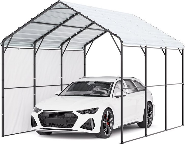 VEVOR Tente Garage, 3,05 x 6,09 m, Carport Abri de Voiture Extérieur avec Parois Latérales Amovibles et Portes, Résistant aux UV et à l'eau, Protection Toutes Saisons pour Automobile et Bateau, Gris