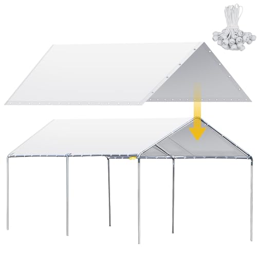 Wesnoy Auvent d'abri de Voiture Robuste imperméable pour Garage, Voiture, Tente pour Remplacement avec 50 tendeurs à Boule, Housse supérieure Uniquement, Cadre Non Inclus, Blanc (3 x 6,1 m