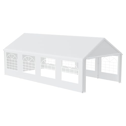 HENGMEI Tente de réception - 4 x 8 m - En métal - Avec panneaux latéraux - Imperméable - Pour fête, stand de marché, jardin, extérieur, camping - Blanc