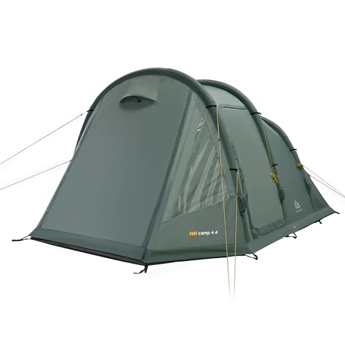 KADVA Tente de Camping AIRcamp 4. pour 4 Personnes Avec Pompe Construction en Tunnel 440 x 180 x 140 cm Résistance à l'Eau 3000 mm Spacieux Auvent sur l'Entrée Grande Surface de Couchage Couleur Verte