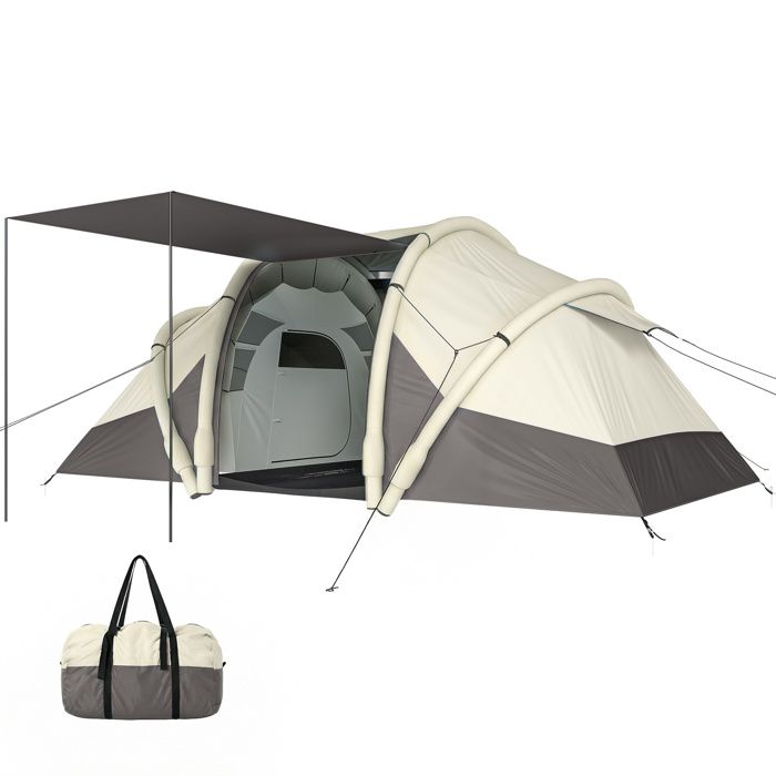 Outsunny Tente Gonflable Camping 2-4 Personnes avec Pompe 2 Chambres et Séjour Imperméable 3000mm 485x245x188cm Gris