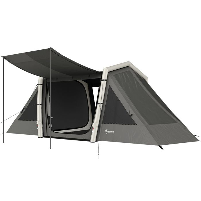 Tente gonflable de camping - Outsunny - 4 personnes 2 chambres et séjour imperméable 3000mm - Oxford - 580x270x202cm - gris foncé