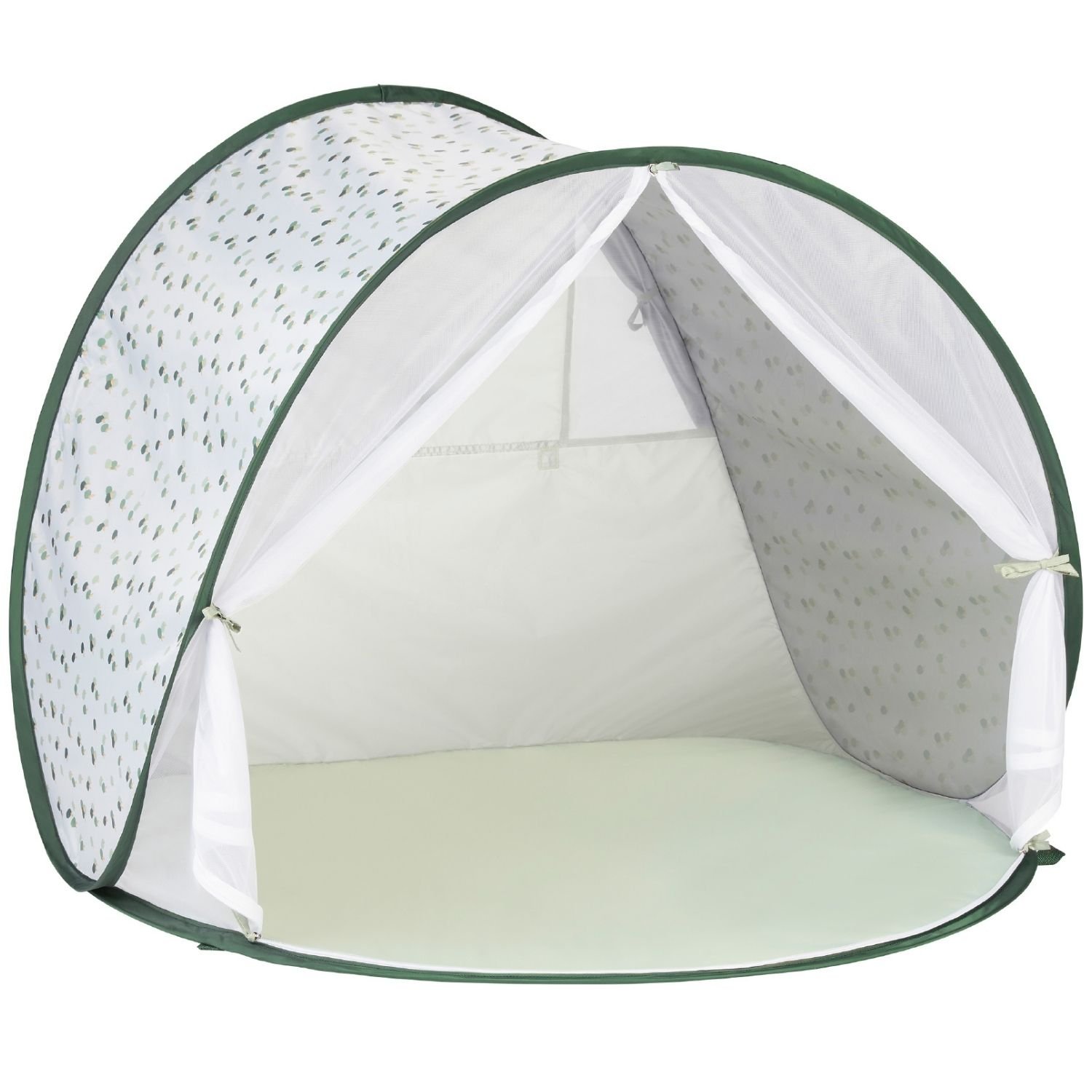 Babymoov Tente Anti-UV Bébé Rafraichissante Moov & Protect - Haute protection Anti-UV UPF 50+ - Système Pop Up - Grande Tente de plage - Moustiquaire à Maille Fine, Green Lagoon