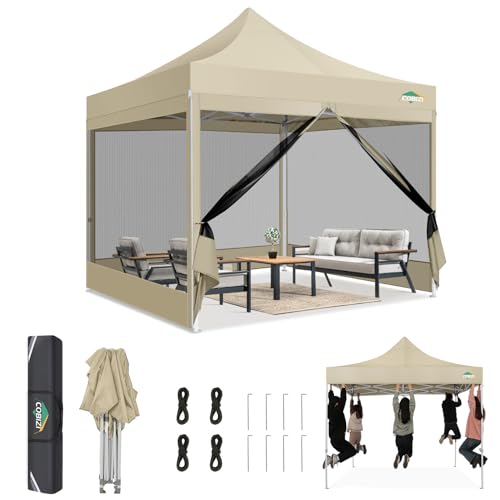 COBIZI Tonnelle Pliante 3x3 Imperméable,Tonnelle de Jardin Exterieur avec Moustiquaire Parois Latérales,Barnum Pliant 3x3,Anti UV Tonnelle Tente pour Exterieur Plage Terrasse (3 par 3m Kaki)