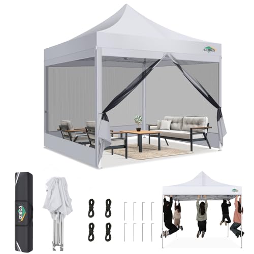 COBIZI Tonnelle Pliante 3x3 Imperméable,Tonnelle de Jardin Exterieur avec Moustiquaire Parois Latérales,Barnum Pliant 3x3,Anti UV Tonnelle Tente pour Exterieur Plage Terrasse (3 par 3m Blanc)