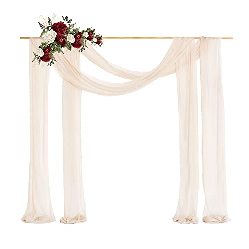 Lukery Mariage Arche Tenture, Extérieur Mariage Rideau Tulle pour Fond de Décor Pelouse Voilage Drapés Mousseline de Soie pour Arche de Mariage (75x300cm(10FT),32 Beige)