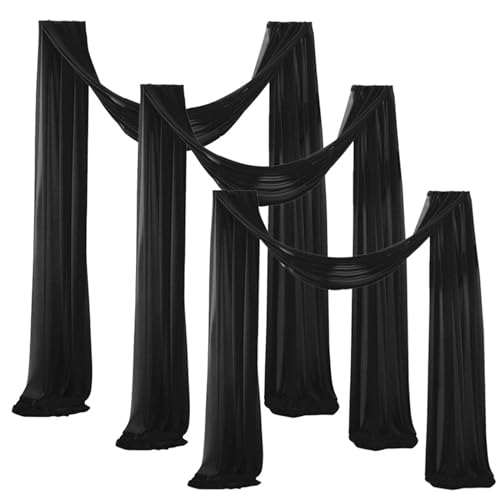 Lukery Mariage Arche Tenture, Extérieur Mariage Rideau Tulle pour Fond de Décor Pelouse Voilage Drapés Mousseline de Soie pour Arche de Mariage, Fête Prénatale, Mariage (75x550cm(18FT),Noir)