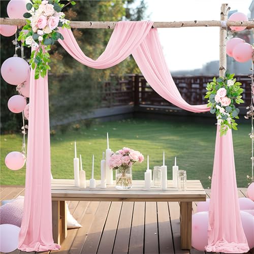 Lukery Mariage Arche Tenture, Extérieur Mariage Rideau Tulle pour Fond de Décor Pelouse Voilage Drapés Mousseline de Soie pour Arche de Mariage (75x400cm(13FT),31 Rose Clair)