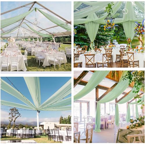 Highdi Tenture Mariage Plafond, Rideaux de Plafond Mousseline de Soie Tenture Mariage Semi Voile pour Arche de Mariage, Fête Prénatale (75x600cm,Vert Sauge)