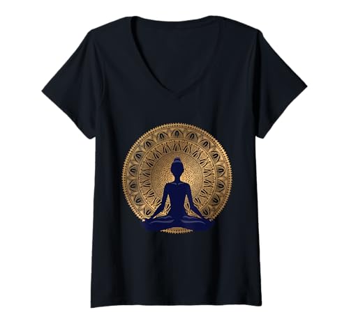 Femme Robe Yoga vêtements de méditation Namaste Position du Lotus T-Shirt avec Col en V