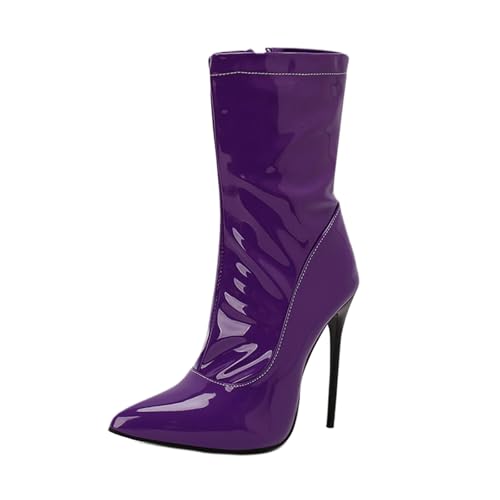 Générique Sandales sexy pour femme Bottes à talons aiguilles pointus tendance pour robes de soirée, de carnaval et tenues boîte nuit (Purple, 34)