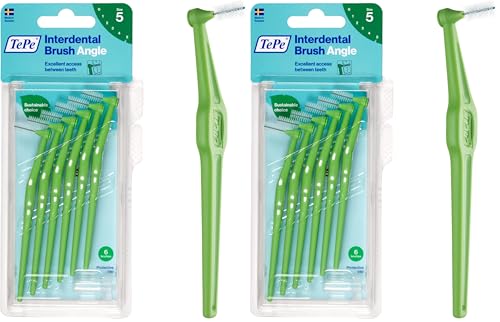 TePe Brossettes interdentaires Angle - Idéal pour le nettoyage des espaces interdentaires des molaires - 1 x 6 brossettes - 0,8 mm - Vert (Lot de 2)