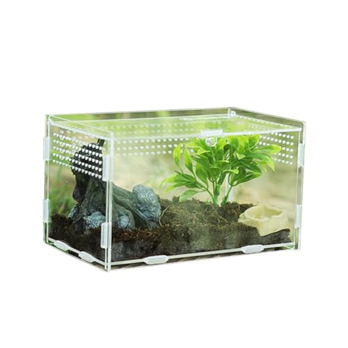Jumping Habitat Cage d'alimentation en acrylique pour terrarium avec arboréal pour petits reptiles Transparent avec habitats à 360 degrés et kit de terrariums