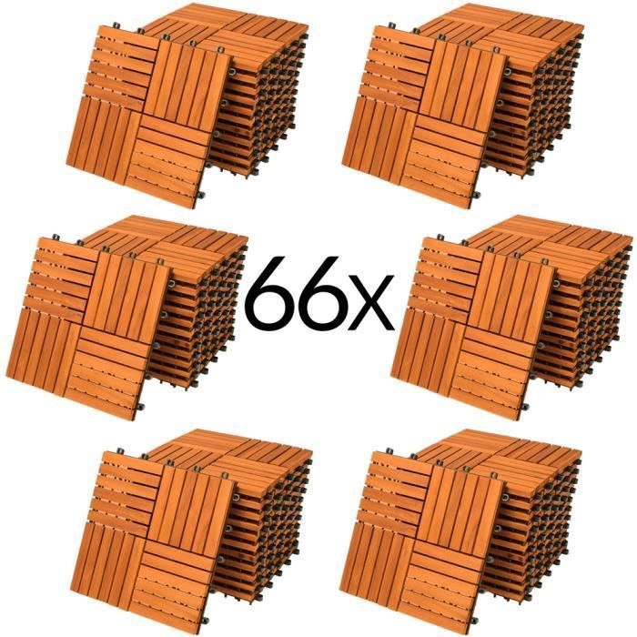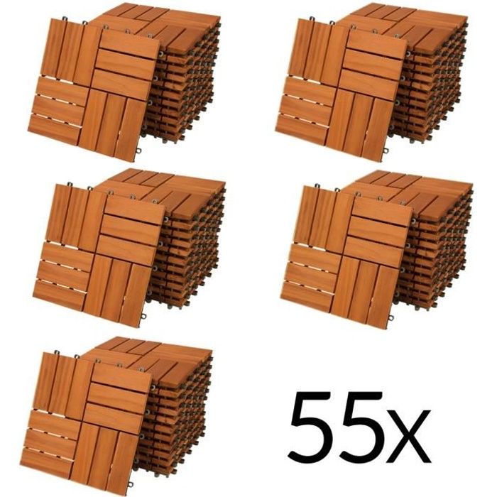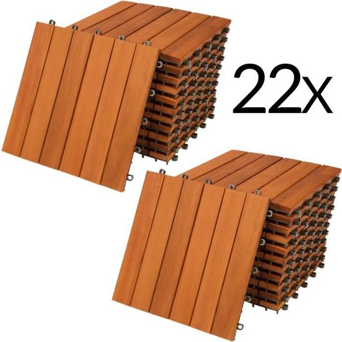 Dalles de terrasse bois d’acacia certifié FSC® 6m² dalle 30x30cm système de clips dalle découpe possible dalle de jardin