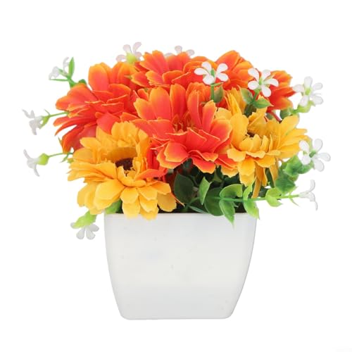 Fleurs artificielles en pot en plastique pour jardin, extérieur, terrasse, intérieur, salon, chambre à coucher, bureau, décoration d'intérieur, plante artificielle réaliste (coucher de soleil)