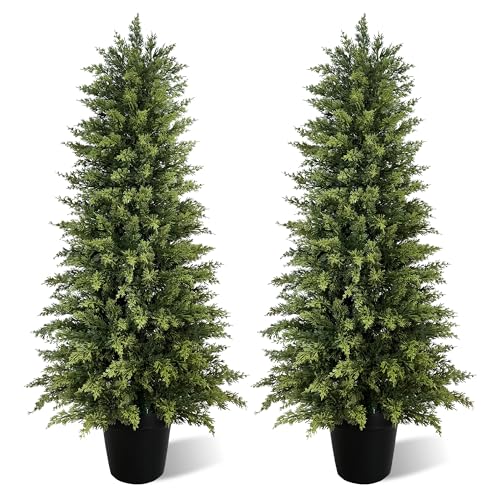 Vitalismo Arbre Artificiel Cyprès Leyland, Plante Artificielle Intérieur Extérieur en Pot, Fausse Plante Conifère Décoration Verte pour Entrée Terrasse Jardin Bureau Centres Commerciaux (2, 123cm)