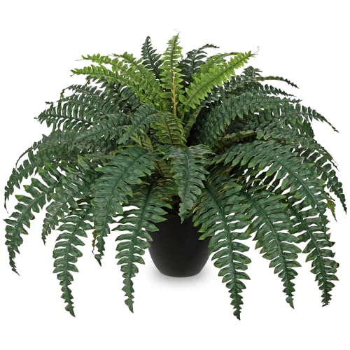 Hollyone Plante artificielle en pot de fougère de Boston de 64,8 cm, fausses fougères en pot pour intérieur et extérieur, plantes givrées artificielles pour décoration de maison, jardin, terrasse