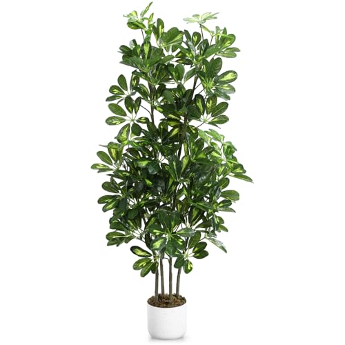 GarveeHome Arbre à Parapluie Artificiel de 120 cm - Grande Plante Artificielle en Pot Blanc - pour Jardin, terrasse et Salon - Décoration résistante aux intempéries