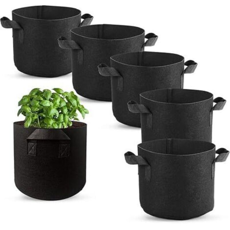 SIMBOOM Sac à Plantes Non tissé, Lot de 6 Sacs de Croissance pour Pomme de Terre, Plante, Tomate, Végétale Aération Tissu Pots avec Poignée, Noir - 5/7/10 Gallons