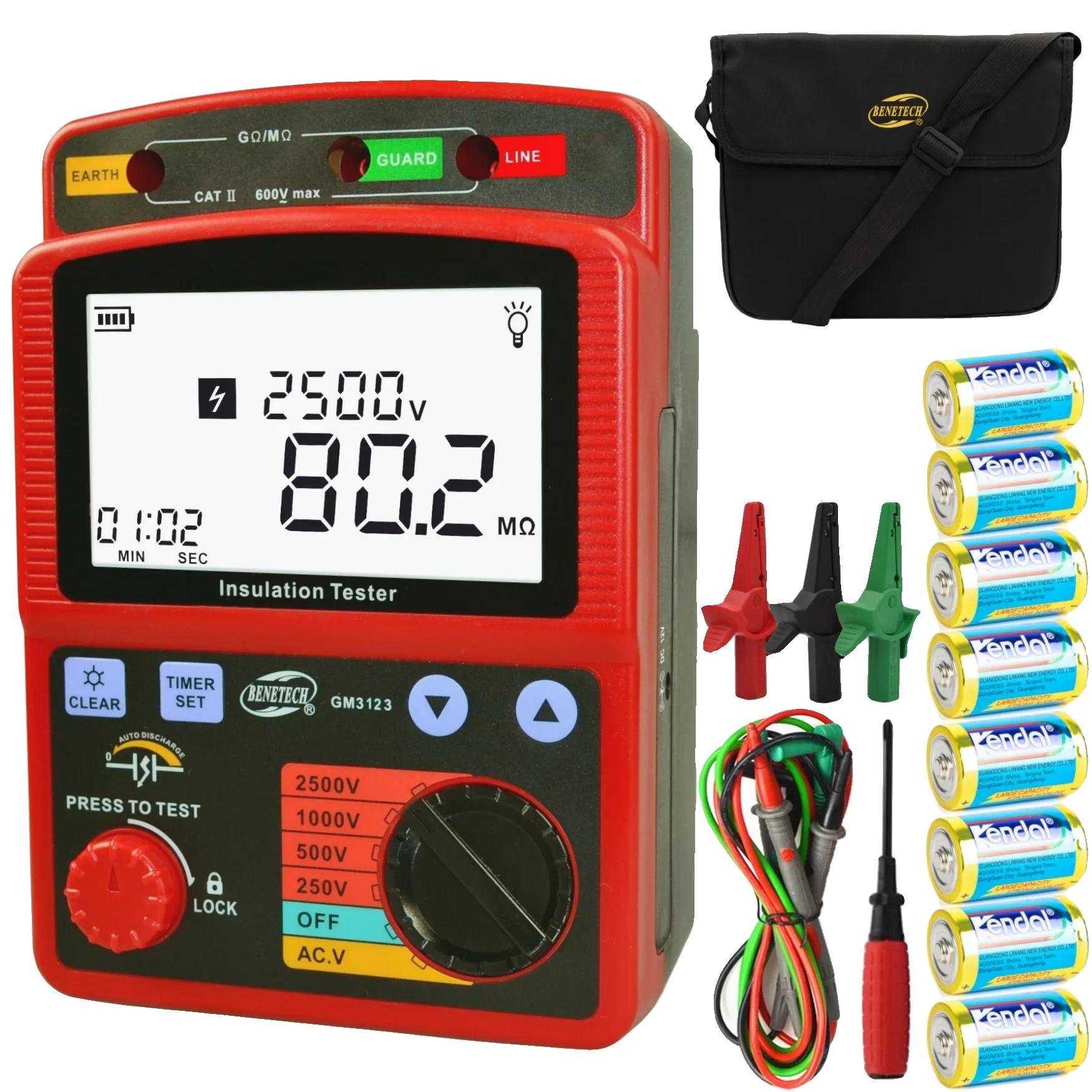 Sarini Testeur de résistance d'isolement Mégohmmètre avec écran LCD rétroéclairé Test de comptage de Tension Ohm Instrument Multifonctionnel