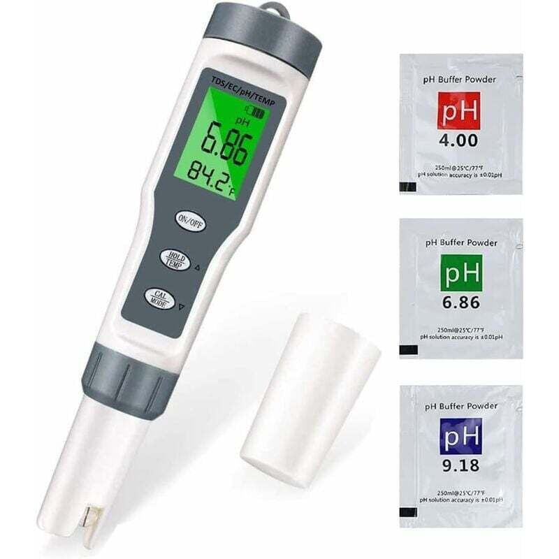Testeur de pH, testeur de pH de piscine mesure TDS pH EC température qualité de l'eau testeur de pH pour eau potable, piscine, aquarium, boissons,