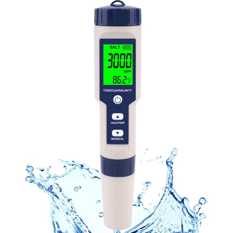 5-en-1pH MetrePHTDS ECSalinitéThermomètreTesteur pH Piscine avec Écran LCD Rétroéclairé et Compensation de la Température