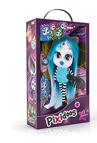 NICI Pixidoos Nali la poupée 20 cm, Boîte Cadeau avec kit Tatouage Enfants, Peigne et Bracelet d'amitié – Poupées stylées aux Cheveux colorés – Peluche Doudou à câliner, Jouer, coiffer, Collectionner 47508 Bleu/Noir