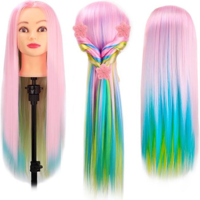 Tte a coiffer professionnelle Cheveux Fibre Synthtique Tte Mannequin Maquillage avec Table Support et Ensemble TETE DAPPRENTISSAGE