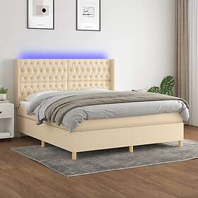 vidaXL Ramsäng med madrass & LED gräddvit 160x200 cm tyg