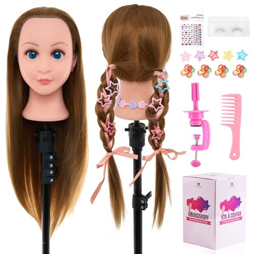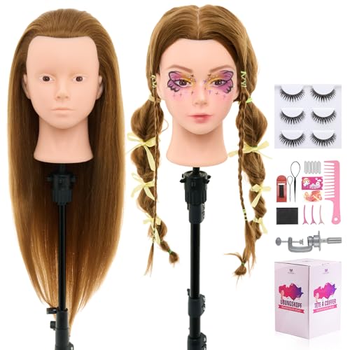 MYSWEETY 20' Têtes D'exercice Têtes à Coiffer Avec Maquillage 60% Cheveux Naturel pour Le Salon Coiffeur Poupée Avec Support+Ensemble de Tresse