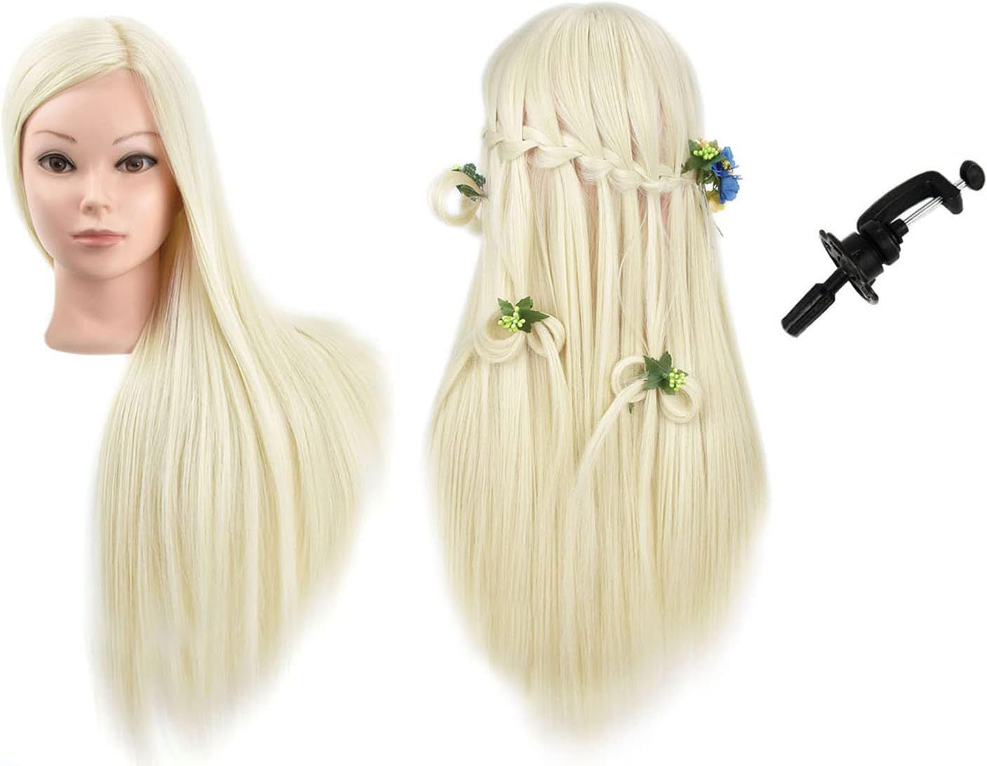 Tete a Coiffer Professionnel 62cm Tête à Coiffer Professionnelle 100% de Cheveux Synthétiques Tete de Mannequin avec Pince de