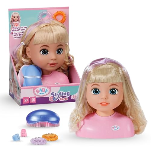 Tête à coiffer Baby Born Carla - Tête à coiffer avec Cheveux en Nylon de Haute qualité - avec Barrettes, Rubans et Brosse - Convient aux Enfants à partir de 3 Ans