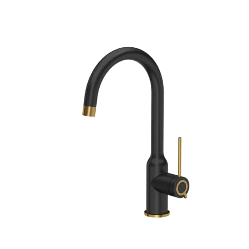 QUADRON Robinet de cuisine INGRID Q LINE SteelQ, mitigeur 360°, robinet de cuisine en acier inoxydable, fonction QFix, couleur: noir, hauteur: 34 cm, tête de robinet: céramique, finition PVD or