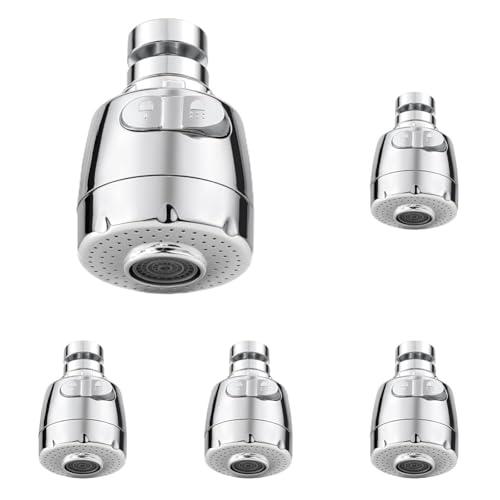 Vinabo Aérateur pour robinet rotatif à 360 °, buse robinet cuisine, évier avec filtre régulateur de tête, 2 modes, aérateur robinet, atomiseur robinet, tête robinet de cuisine, argenté (Lot de 5)
