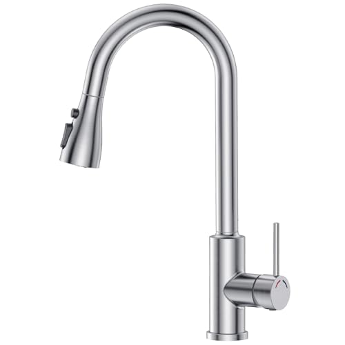 SREWOHS PRO Mitigeur d'évier de cuisine avec pulvérisateur extractible, tête de pulvérisation extractible, robinet monobloc à levier unique, 1 trou avec arc haut, pivotant à 360 °, 3 modes, tête de