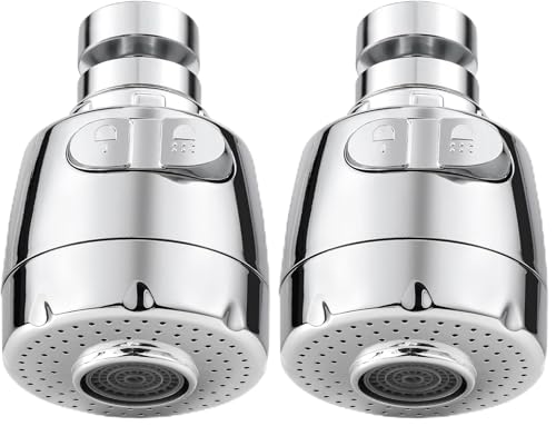 Vinabo Aérateur pour robinet rotatif à 360 °, buse robinet cuisine, évier avec filtre régulateur de tête, 2 modes, aérateur robinet, atomiseur robinet, tête robinet de cuisine, argenté (Lot de 2)