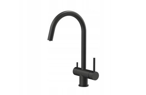 QUADRON Robinet de cuisine CAREN Mélangeur à trois voies 360°, Couleur: Noir mat (Pure Carbon), Hauteur: 35 cm Fonction QFix, Robinet cuisine en acier inox, Tête de robinet: céramique