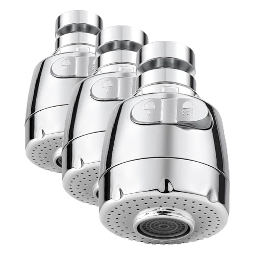 Vinabo Aérateur pour robinet rotatif à 360 °, buse robinet cuisine, évier avec filtre régulateur de tête, 2 modes, aérateur robinet, atomiseur robinet, tête robinet de cuisine, argenté (Lot de 3)
