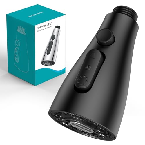 SREWOHS PRO Tête de pulvérisateur de robinet de cuisine extractible, pièce de rechange, buse de rechange pour pulvérisateur d'évier extractible à 4 fonctions, nickel brossé (Noir)