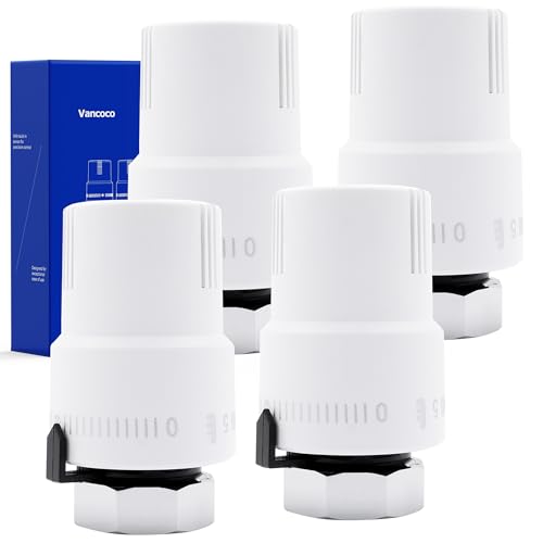 VANCOCO 4 Pièces M30×1,5 mm Tête Thermostatique Radiateur, Thermostat Radiateur Blanc, Robinet Thermostatique Radiateur avec Protection Contre Le Gel