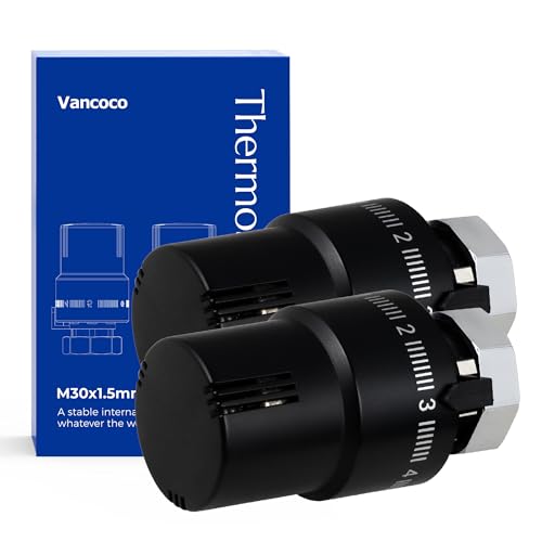 VANCOCO M30×1,5 mm Tête Thermostatique Radiateur, Thermostat Radiateur Noir, Robinet Thermostatique Radiateur avec Protection Contre Le Gel