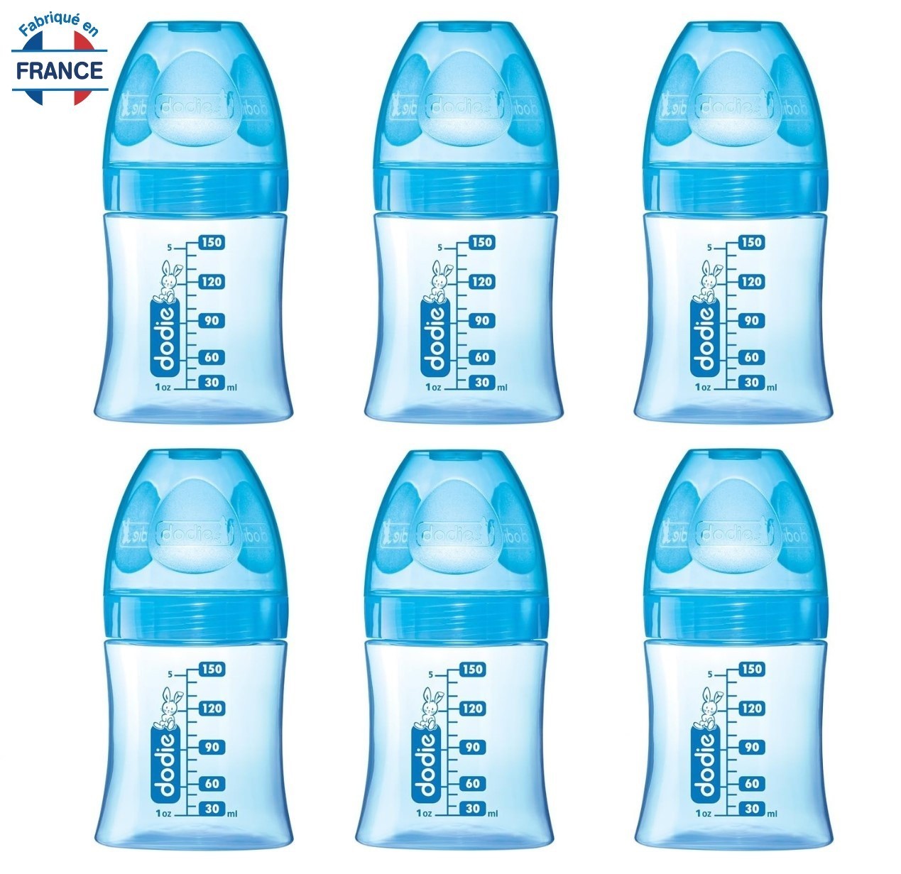 Biberons Lot par 6 Naissance Anti-Colique DODIE Tétine Ronde 0-6 mois Débit Lent