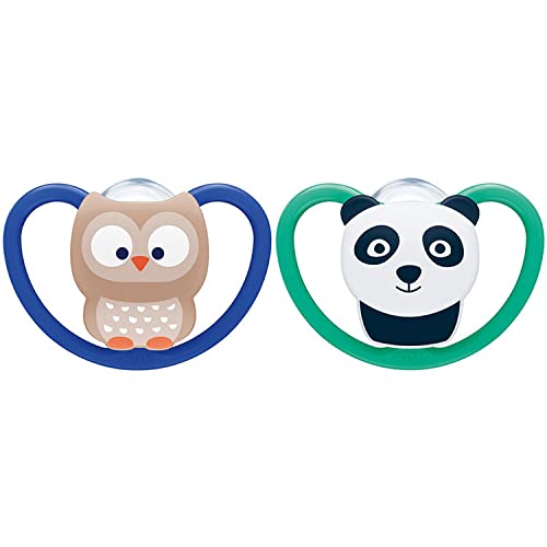 NUK Tétine Space avec effet lumineux | Tétine avec ventilation supplémentaire | Silicone sans BPA | 6-18 mois | Lion et Lune | 2 Pièces