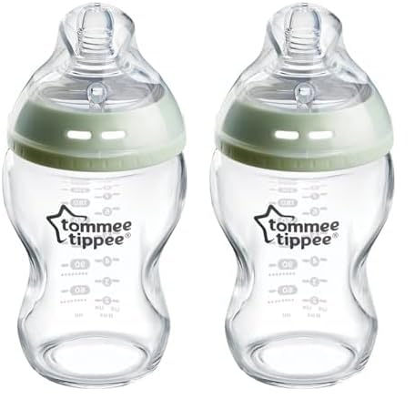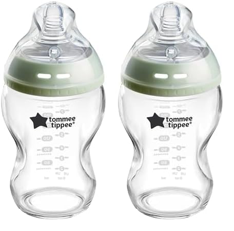 Biberons Tommee Tippee, Biberon en verre Anti-colique Natural Start, 250ml, tétine imitant la forme du sein pour prise en bouche naturelle, lot de 2