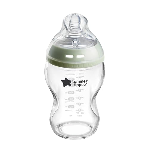 Tommee Tippee Biberons, Biberon en verre Anti-colique Natural Start, 250ml, lot de 1 avec tétine imitant la forme du sein pour prise en bouche naturelle